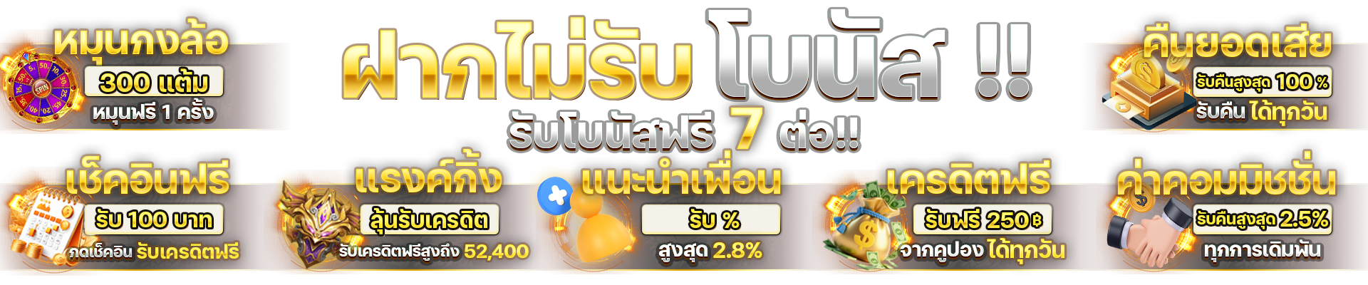 ตอบ : มีโบนัสต้อนรับ 100% แจกเครดิตฟรี คืนยอดเสีย โบนัสวันเกิด และกิจกรรมแจกรางวัลประจำเดือน